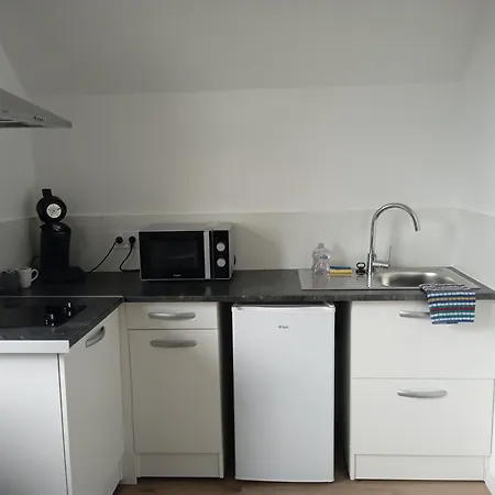 L'appartamento Bienvenue à Saint Julien De Vouvantes - Dormir Comme A La Maison offre comodi servizi di self-catering, tra cui una cucina completamente attrezzata con un bollitore elettrico, un frigo e utensili da cucina.